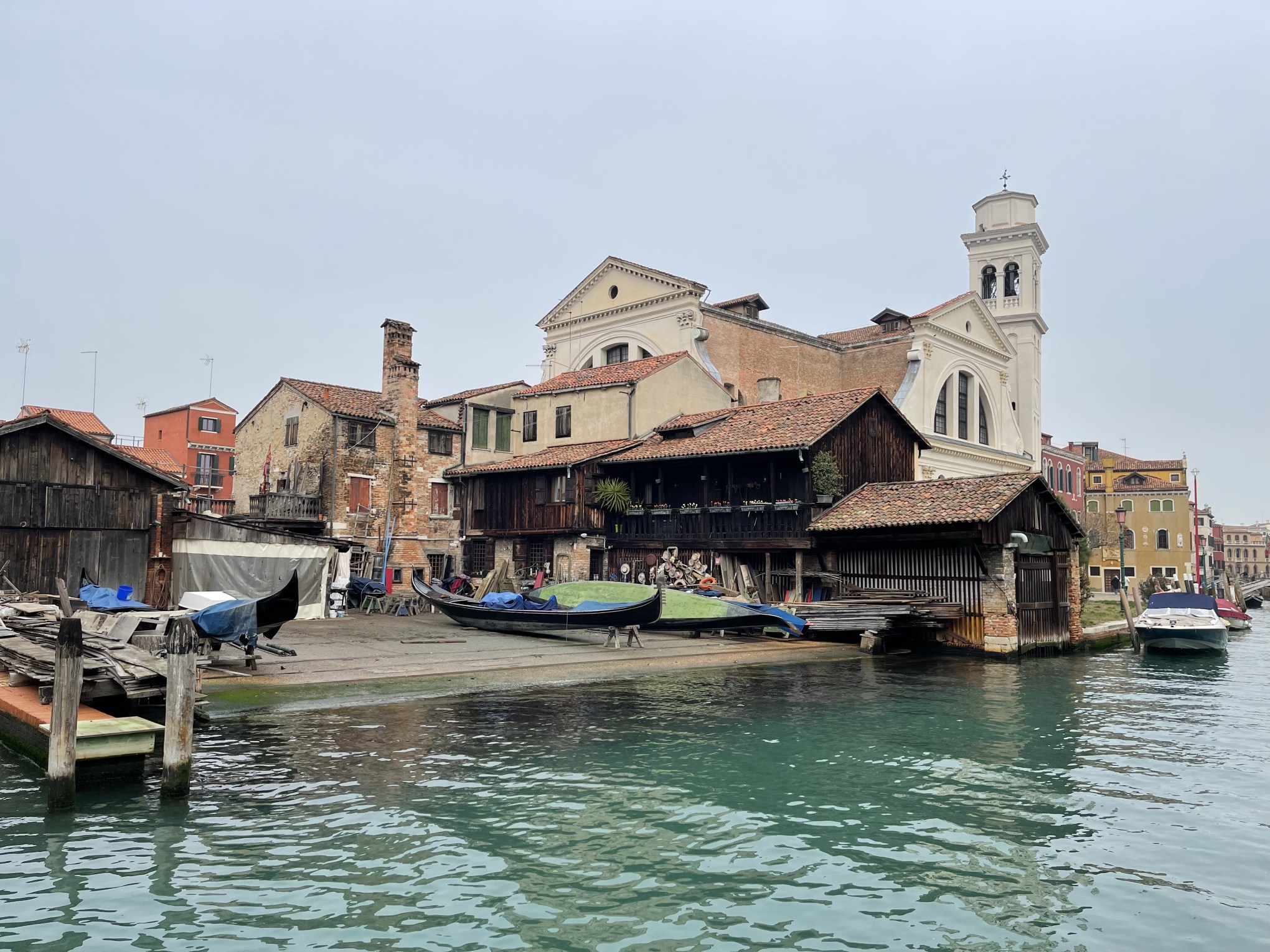 Venice is a treasure trove of interesting buildings. This wonderful 17th century boat yard is one of my favourite spots. Situated on a quiet canal behind Zattere, in the shadow of the Campo San Trovaso church, it is one of the few remaining traditional gondola repair yards. The alpine style of the wooden workshop stands in contrast to the ubiquitous stone, brick and plaster of the city. I’m told this is because the original craftsmen, and the wood they used, came from the Cadore hills, which lie at the foot of the alps to the north of the city. In any case, the sight of these huge, flat-bottomed boats, standing on trestles, in various states of repair, is always fascinating. It provides a glimpse behind the scenes of traditional Venetian commerce.